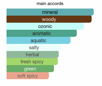 The fragrance opens with a clean mineral freshness and aromatic herbs, followed by a smooth violet leaf heart that adds sophistication. The base features smoky vetiver and woody notes, giving the scent a long-lasting and masculine finish without feeling heavy.